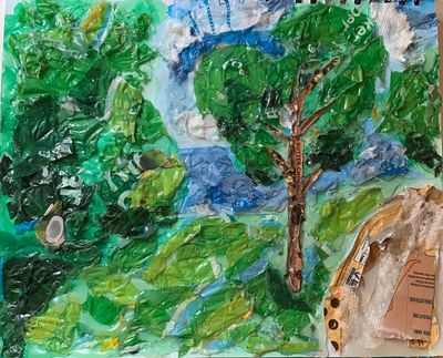 For my art class plastic curriculum idea, students (of all ages) can get a better understanding of how dependent we are on plastics, by creating a plastic collage.